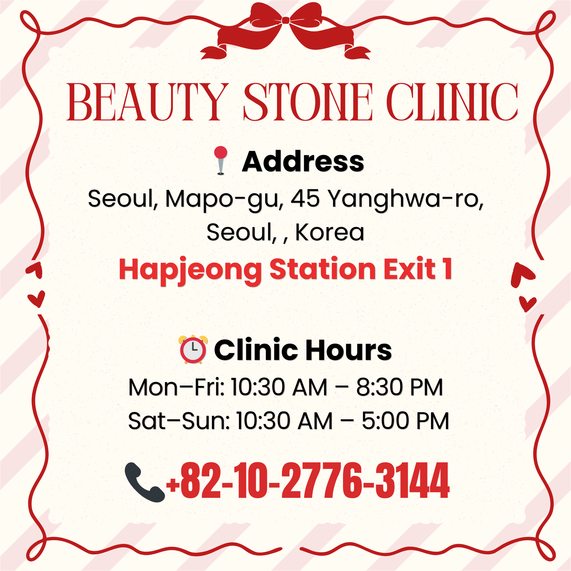 If you're in Hongdae, Seoul, Korea, Hongdae Beautystone Clinic offers advanced cosmetic dermatology services led by experienced specialists in skin rejuvenation, laser treatments, and injectables.